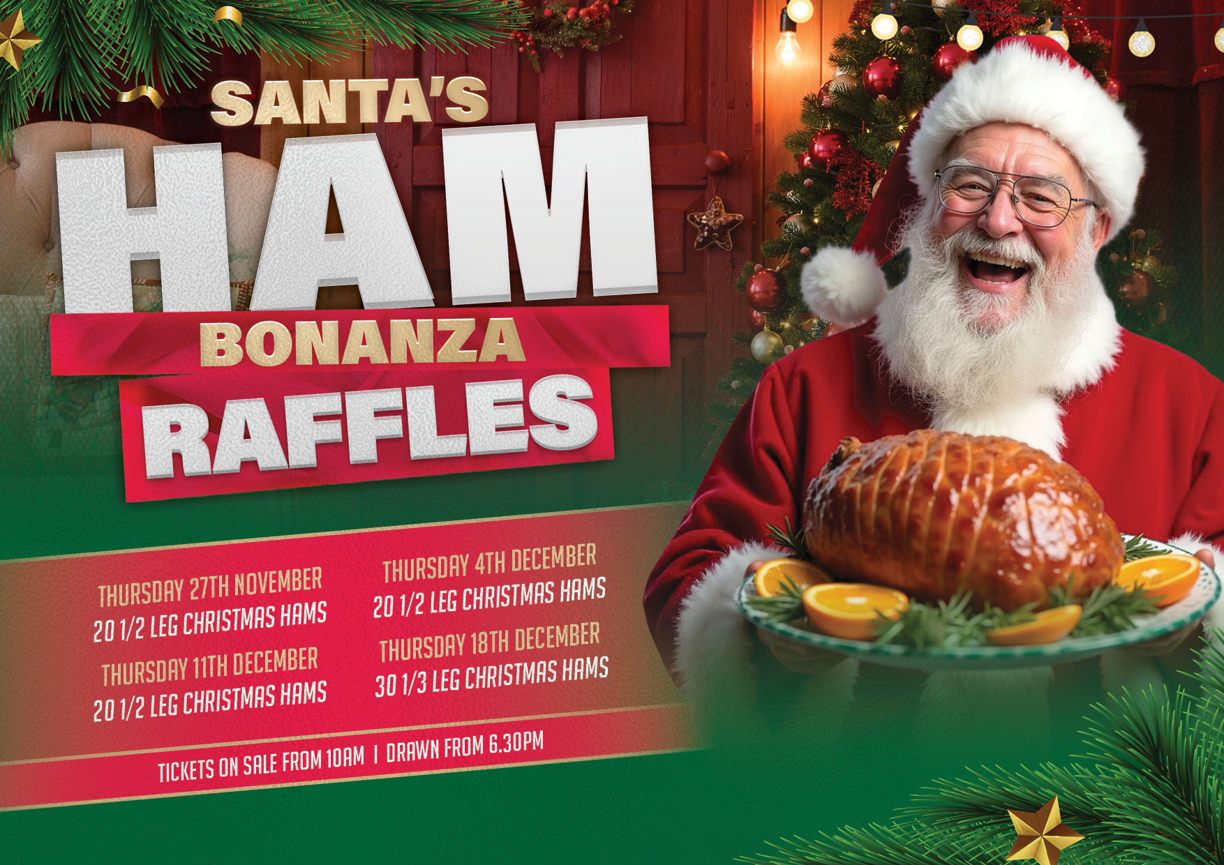 THURSDAY HAM RAFFLES Nov 27 8:00 am - 5:00 pm Recurring THURSDAY HAM RAFFLES Tickets on sale from 10am Drawn from 6.30pm